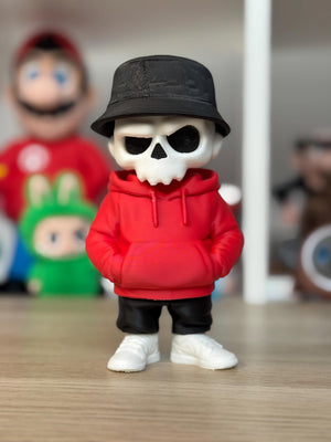 Dale un toque único y moderno a tu colección con esta original figura de calavera esqueleto estilo urbano.